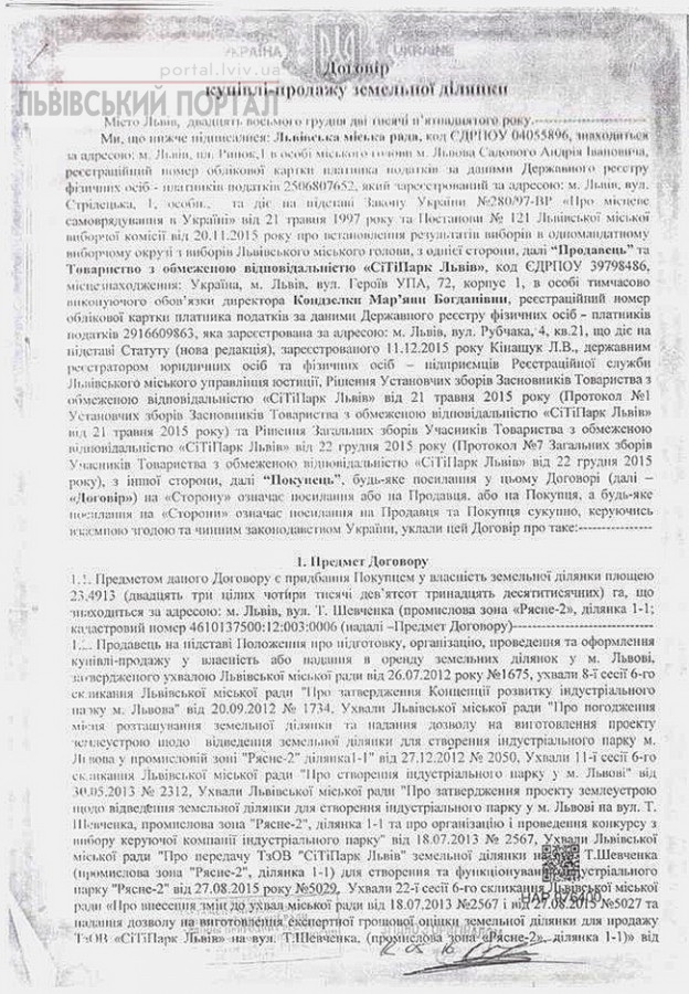 Это важно заметить, поскольку участок, который мэр Садовый продал задешево компании ООО «Сити Парк Львов», был именно тот, который Philip Morris International решила приобрести для своего завода. На сайте UkraineInvest информация об этом участке под названием «Рясне-2-СТР» указана, но не указано, что всю инфраструктуру для него построили за счет бюджетных средств, или, другими словами, за средства граждан. Предварительные оценки свидетельствуют о том, что на эти цели было потрачено около 400 миллионов гривен.