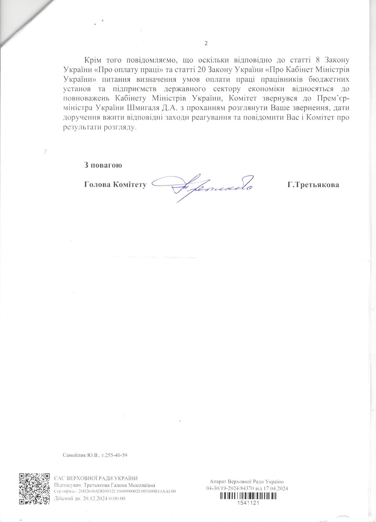«А также в ответе отмечается, что члены Комитета ознакомлены с моей инициативой, и по тем основаниям Комитет Верховной Рады обратился к Премьер-министру Украины — Шмыгалю Д.А. с просьбой рассмотреть мое обращение и дать поручение принять соответствующие меры и сообщить мне и комитету Верховной Рады о результатах рассмотрения моей петиции», — говорится в сообщении.