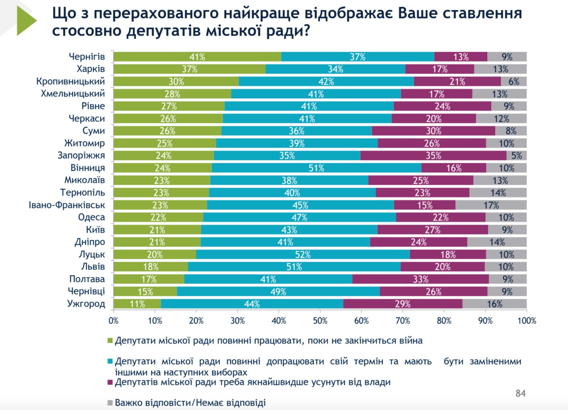 Также, более половины жителей Львова считают, что депутаты Львовского городского совета должны доработать этот срок и уйти.