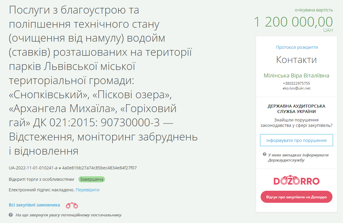 Первое. Управление экологии уже после завершения тендера на 1 200 000 гривен и оплаты средств взялось «доработать техническое задание для вывоза ила», что указывает на халатность должностных лиц Управления.